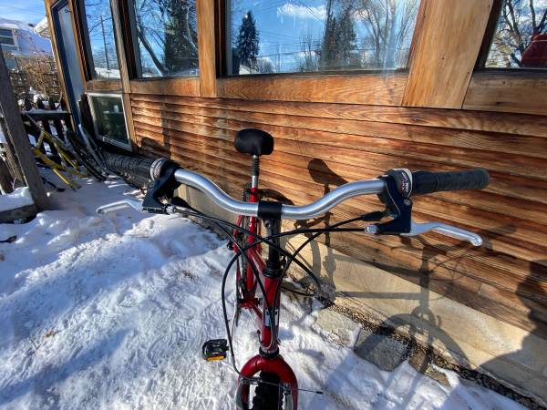 Mechanically, this bike has been fully rebuilt from the frame up. It has received what a bike shop would call a full major overhaul. Built from the frame up, all components have been meticulously cleaned & lubed. Solid V-Brakes feature fresh pads, all new cables and housing for brakes and shifting. Shifts very crisp, rolls very smooth. Alloy wheels are true, lightweight and roll great. Twist shifters are easy to use, especially with gloves/mittens.