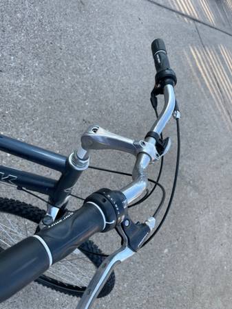 18.5 inch Alpha aluminum frame 26 inch aluminum wheels 24 speed twist shifters Shimano gears Adjustable handlebar angle RST front suspension, seat post suspension Pickup in New Brighton 55112...