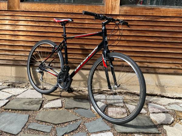 Upgraded double wall alloy wheels are strong, roll fast and are true. New cables and housing in both brakes and shifters. New chain, fresh cassette, drivetrain is in excellent condition. Shifts crisply, rolls smooth 700x38c tires provide plenty of cushion, but still roll fast. Good for pavement, gravel or whatever mixed terrain you may encounter. Lightweight aluminum frame, Cannondale quality. The kind of quality you'd expect from a good used bike shop.