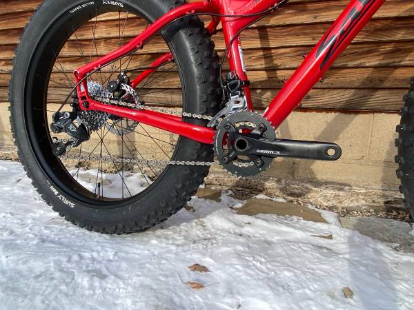 Fully tuned, detail cleaned and lubricated. Fresh off the repair stand with only a few test miles. Perfect way to dip your toe into fat biking, a high quality bike that doesn't break the bank.