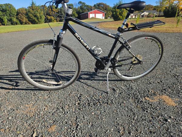 Schwinn Avenue Hybrid Bicycle. A few years old, but in great condition. 21 speed Shimano shifting. Front suspension. Seat post suspension. Tires and brakes in great shape. Rear utility rack. Bell...