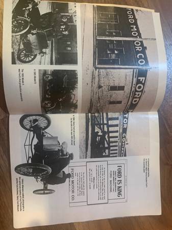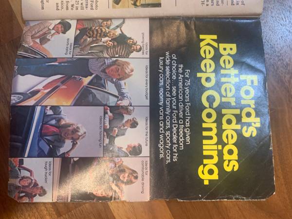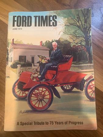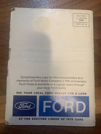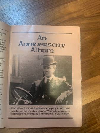 Has wear but mostly contained to back page. Commemorative magazine celebrating Ford automobiles 75th year. Not magazine-sized, closer to book-sized. Cash $5 Vow
