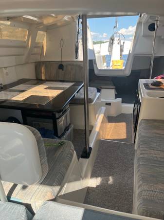 1997 McGregor 26X sailboat motor sailor well maintained sailboat in perfect working condition located in Bayport Minnesota. 97 McGregor 26X with a 25 hp Honda four stroke perfect for lake or river boating. Mostly all original except for some updated hardware, and upgraded steering system, the sails are crisp and comes with everything needed for every day sailing and beyond. Comes with original McGregor trailer. Spent most of its life indoors, and all of its life has been spent on the Saint Croix in Minnesota freshwater. A beautiful and very versatile, sailboat motor sailor. If you’re familiar with these boats, you know how incredibly fun and versatile these boats are with a swing keel and very shallow draft means you can beach it anywhere and very light towing capacity when on the road. The 25 hp four stroke Honda starts every time. It’s a great sailboat and then you can drop the mast and use it as a runabout and pull skiers and inner tubes that sleeps five comfortably. Under tow it turns into your weekend camper. Located 20 minutes from Saint Paul in Bayport Minnesota. $9999