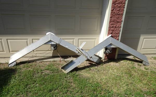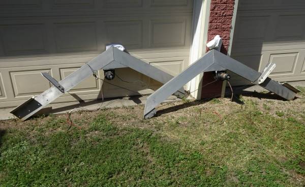 We purchased these strong boat davits to mount to our boat for our dingy, but decided to go in a different direction. While in our possession they have been stored inside. Great boat davit for lifting a small boat, dingy, or Wave Runner out of the water. Each winch is line rated at 1000lbs. Will require a 12V switch and 12V battery (neither supplied) to connect and operate. Was going to use the Harbor Freight remote control switch, which is about $50.00. This would be an excellent addition to your boating experience!