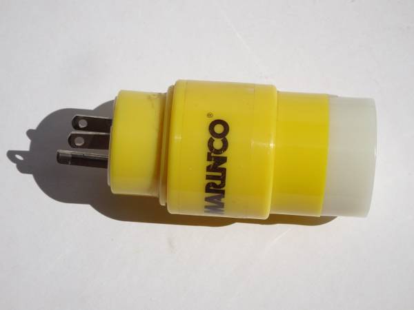 Dock side: Male plug attaches to dockside receptacle or cordset