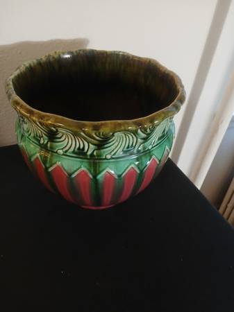 Nice Old Weller Jardiniere Highland Village Estate Sale Monday October 27 11am-3pm 22 Inner Drive St. Paul red green Art Nouveau Art Pottery