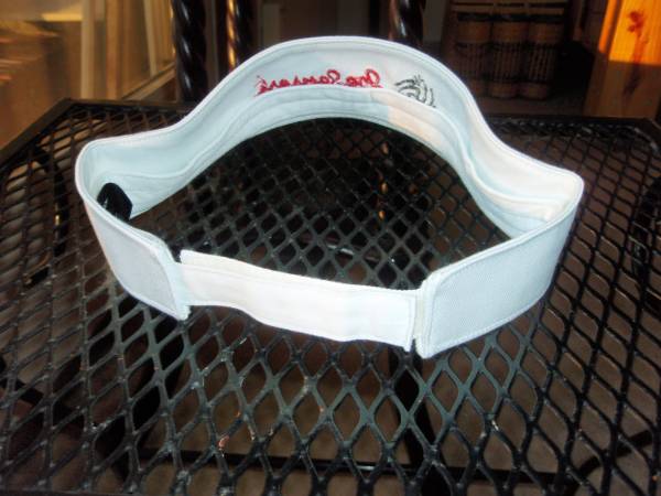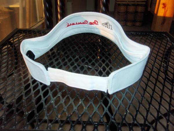 Velcro size adjustment, white cloth, Nice embroidered front. I have 7 visors for sale. $8 each