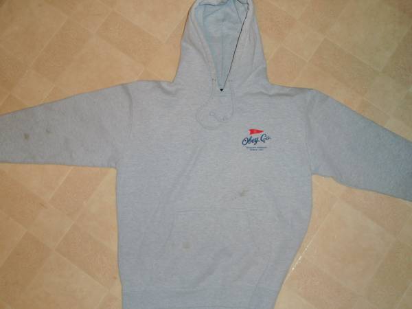 Great condition, gray, size L, premium/heavy grade 80% cotton/20% poly. Emblem on left chest and back. Very nice and warm! Small, light spot on front. $25 hoodie, hoody