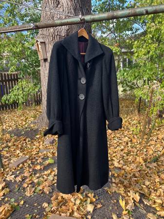 Stylish warm 40s swing coat with iridescent mauve lining in near perfect condition.