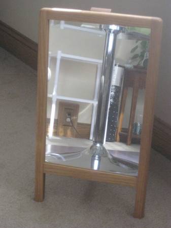 This mirror came from my sister's western wear store. Guys, check the look of your boots in the mirror. And ladies can check their boots, skirt or trouser length, too!! 13 1/2"W X 24"T. Does NOT collapse, so it's very sturdy. This would make a very unique Christmas gift, or just buy and use it yourself. Cash only. You pick up. FCFS. Serious inquiries only. Thanks.
