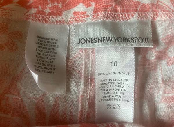 Brand New Ladies Shorts Brand: Jones New York Size: 10 100% Linen, Machine Washable Smoke-Free Home Posting Removed When Sold