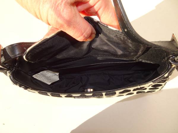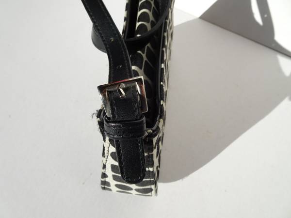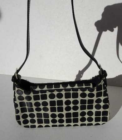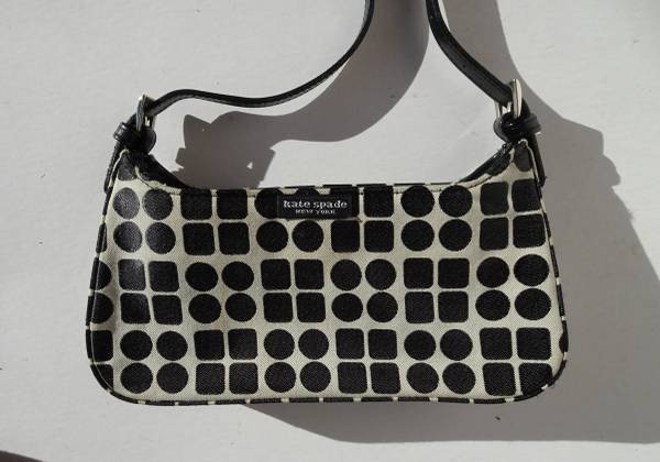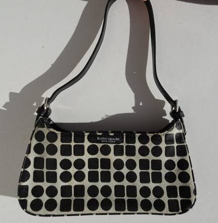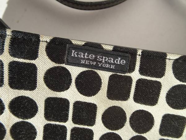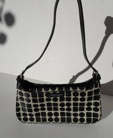 Kate Spade Black and White Purse, Handbag with Squares & Dots, Black Strap