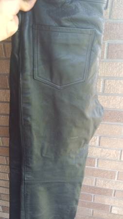 Leather jean style motorcycle pants. Size 34 waist about 30 long.