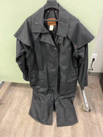 Awesome duster for sale! oil cloth in black.....need I say more? its in amazing condition. See pics for more info and thanks for looking.