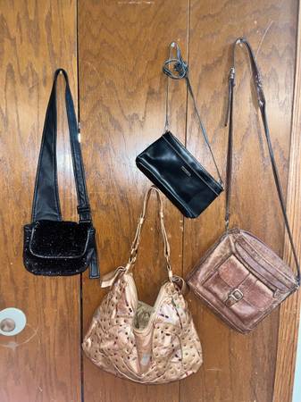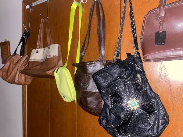 Purses, some real Leather. All clean, new & used. Brands - Nine West, Logan, Jones New York etc... Denim purse also clean with many compartments. Fanny packs are new with inside pockets, a holder for cards, glasses etc... & women's fashion, kid's vintage & men's HATS & caps (including Domo). I also have many trendy & clean kids purses, character bags & many other clean accessories (including silk scarves). Also beach bags & backpacks (many new!). If interested, I can send specific detailed pics. You can email here, call or text me. I'm fair & flexible with pricing. Thanks!