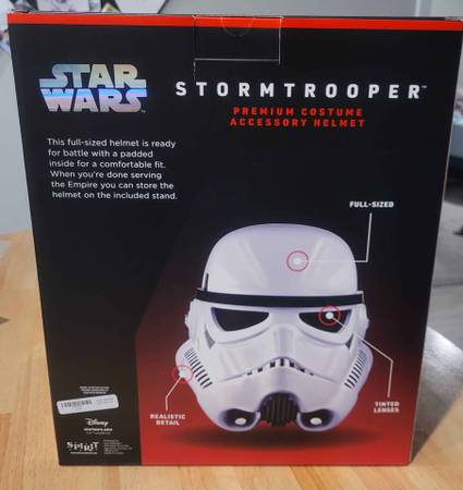 Adult Stormtrooper Star Wars helmet. I purchased from Spirit Halloween for my husband who decided on a different costume. Can deliver for a fee, or we can meet in a public place.
