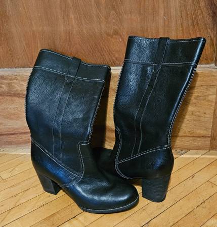 Excellent Condition Non smoking home Leather, Waterproof Pull-on Black Boots size 9.5