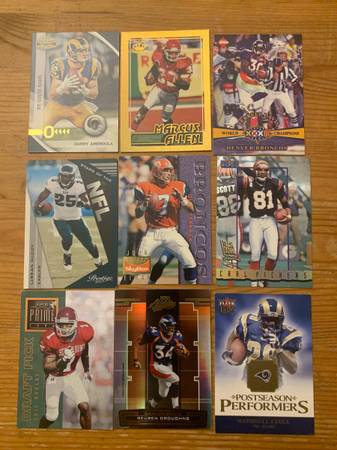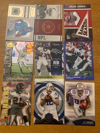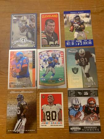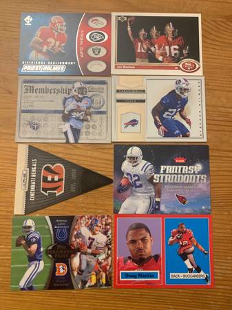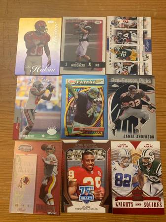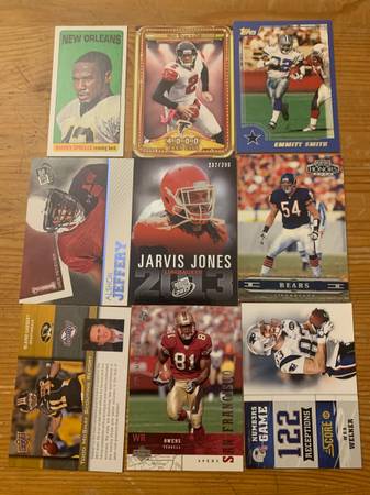 109 different football cards. Nice condition. Book value of each card is anywhere from $1 to $4 per card. Total book value is $164. Cash $33