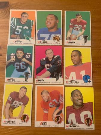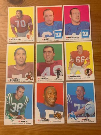 25 cards, all different, from the 1969 Topps football card set. These are in pretty nice condition. The others went in a separate stack. Cash 20