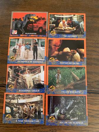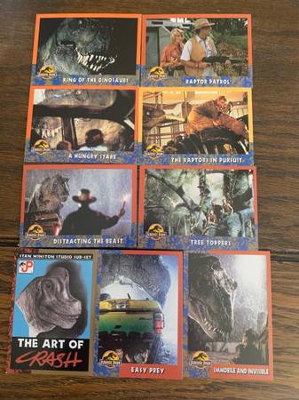 21 Jurassic Park cards. 4 cards are duplicates. $5 cash