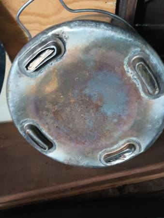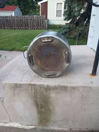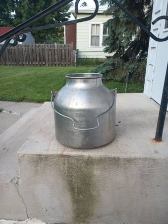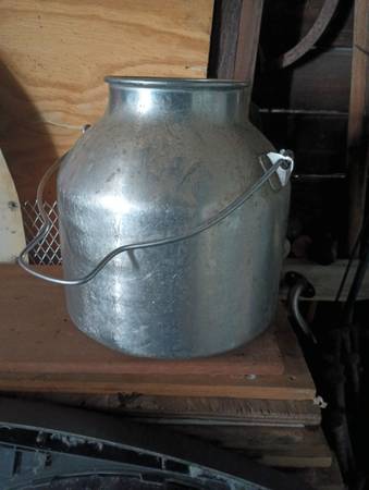 Stainless steel milk pail with handle. Makes a great planter or for decor. Pail feet show wear, this vintage milk pail is in overall good condition.