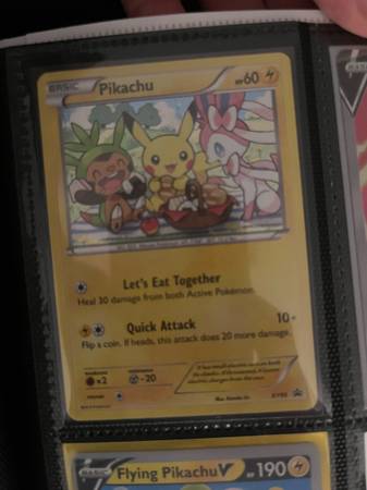 Pikachu XY95 promo- $54 Pikachu V 170/185- $23 Pikachu V 157/172- $13 Flying Pikachu V- $2 Pikachu V 043/185- $2 Vileplume GX- $15 Jolteon V- $18 Vaporeon V- $18 Glaceon Vstar- $3