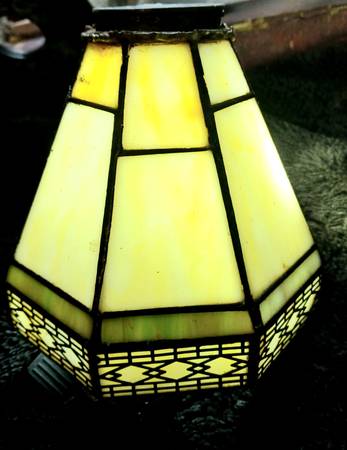 Stained glass lamp shade (lamp base not included) 5.5" in diameter. Clean lines and a rich color palette would illuminate beautifully in your home. All glass intact. Please email with inquiries. $40.