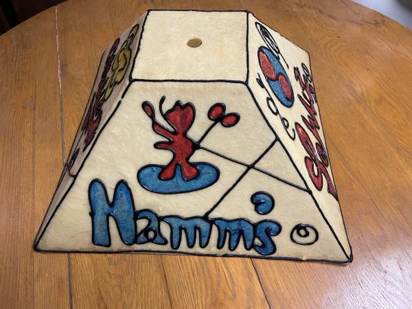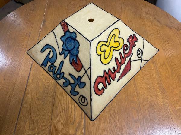 This is a really fun cool lampshade showing Hamms Schlitz PBR and Miller on each of the four sides. Cool graphic showing the Pabst blue ribbon the Hamms bear the Schlitz globe and the Miller logo. It is Made out of hard plastic with no breaks or cracks in the shade. Will be perfect for the man cave woman cave garage bar cabin anywhere you like. It measures 16 1/2 across & 7 1/2" high. Price is $30. Thanks for looking best to call or text me at show contact info