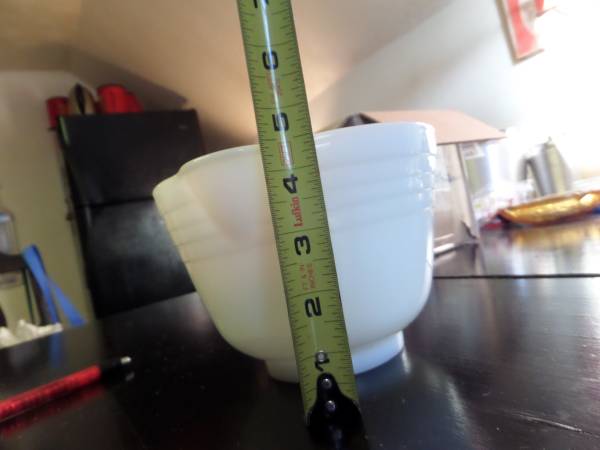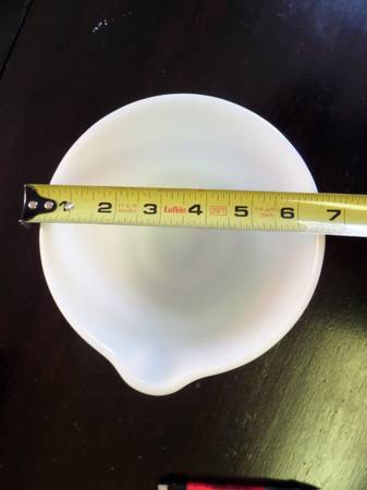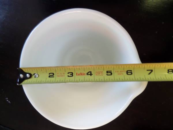 Vintage Milk Glass Mixing Bowl in great vintage shape! Smooth Rims top and bottom Only marking is a (10) on the bottom Anchor Hocking, FireKing, Glasbake - not sure See pictures for size