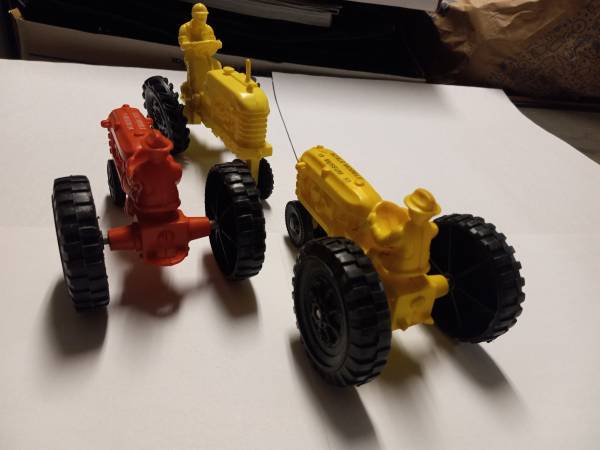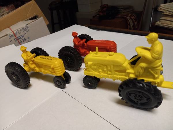 - Sandusky Ohio Yellow 6" long Tractor. 5 1/2" - 2 - Ertl "Models Museum" Plastic Farm Tractors. 1993 and 1994. 5" All 3 for $10