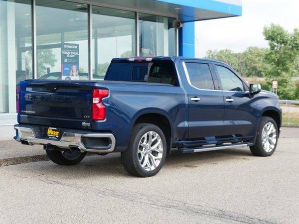 10-Speed Automatic, 4WD, Gideon/Very Dark Atmosphere Leather. Northsky Blue Metallic 2020 Chevrolet Silverado 1500 LTZ 4WD 10-Speed Automatic EcoTec3 6.2L V8LTZ Convenience Package (2 USB Ports (First Row), 2nd Row Heated Outboard Seats, Floor Mounted Center Console, Front Bucket Seats, Power Sliding Rear Window w/Rear Defogger, Power Tailgate, Universal Home Remote, and Ventilated Driver & Front Passenger Seats), LTZ Convenience Package II (Premium Bose 7-Speaker Sound System, Radio: Chevrolet Infotainment 3 Premium System, and Wireless Charging), LTZ Premium Package (Power Sunroof), Preferred Equipment Group 1LZ (10-Way Power Driver Seat w/Lumbar, 10-Way Power Passenger Seat Adjuster w/Lumbar, 12-Volt Rear Auxiliary Power Outlet, 120-Volt Bed Mounted Power Outlet, 120-Volt Instrument Panel Power Outlet, 4.2" Diagonal Color Display Driver Info Center, 4G LTE Wi-Fi Hot Spot Capable, 6-Speaker Audio System, Advanced Trailering System, Auto-Dimming Inside Rear-View Mirror, Auxiliary External Transmission Oil Cooler, Bluetooth® For Phone, Chevrolet Connected Access Capable, Chrome Grille, Chrome Mirror Caps, Color-Keyed Carpeting Floor Covering, Compass, Deep-Tinted Glass, Driver Memory, Electric Rear-Window Defogger, Electrical Lock Control Steering Column, EZ Lift Power Lock & Release Tailgate, Front Frame-Mounted Black Recovery Hooks, Front LED Fog Lamps, Front Rubberized Vinyl Floor Mats, HD Radio, HD Rear Vision Camera, Heated Driver & Front Outboard Passenger Seats, Heated Steering Wheel, Heavy-Duty Rear Locking Differential, Hitch Guidance, Hitch Guidance w/Hitch View, Integrated Trailer Brake Controller, Keyless Open & Start, Leather Wrapped Steering Wheel, LED Cargo Area Lighting, Manual Tilt/Telescoping Steering Column, OnStar & Chevrolet Connected Services Capable, Outside Heated Power-Adjustable Mirrors, Power Door Locks, Power Front Passenger Windows w/Express Up/Down, Power Front Windows w/Driver Express Up/Down, Power Rear Windows w/Express Down, Rear Dual USB Charging-Only Ports, Rear Rubberized-Vinyl Floor Mats, Rear Wheelhouse Liners, Remote Vehicle Starter System, SiriusXM w/360L, Steering Wheel Audio Controls, Steering Wheel Mounted Electronic Cruise Control, and Theft Deterrent System (Unauthorized Entry)), Safety Package (Lane Change Alert w/Side Blind Zone Alert, Perimeter Lighting, Rear Cross Traffic Alert, and Ultrasonic Front & Rear Park Assist), Safety Package II (Adaptive Cruise Control - Camera, Automatic Emergency Braking, Following Distance Indicator, Forward Collision Alert, Front Pedestrian Braking, IntelliBeam Automatic High Beam On/Off, Lane Keep Assist w/Lane Departure Warning, and Safety Alert Seat), Technology Package (15" Diagonal Multicolor Head-Up Display, 8" Driver Information Center, Bed View Camera, HD Surround Vision w/2 Trailer View Camera Provisions, and Rear Camera Mirror), Trailering Package, Up-Level Rear Seat w/Storage Package, 10-Speed Automatic, 4WD, Gideon/Very Dark Atmosphere Leather, 170 Amps Alternator, 3.23 Rear Axle Ratio, 4-Wheel Disc Brakes, 40/20/40 Front Split-Bench Seat, 6 Speakers, ABS brakes, Air Conditioning, Alloy wheels, AM/FM radio: SiriusXM with 360L, Apple CarPlay/Android Auto, Auto-dimming door mirrors, Auto-dimming Rear-View mirror, Automatic temperature control, Brake assist, Bumpers: chrome, Chevytec Spray-On Black Bedliner, Delay-off headlights, Driver door bin, Driver vanity mirror, Dual Exhaust w/Polished Outlets, Dual front impact airbags, Dual front side impact airbags, Electronic Stability Control, Engine Block Heater, Front anti-roll bar, Front Center Armrest w/Storage, Front dual zone A/C, Front fog lights, Front License Plate Kit, Front reading lights, Front wheel independent suspension, Fully automatic headlights, Heated door mirrors, Heated front seats, Heated steering wheel, Heavy Duty Suspension, Illuminated entry, Low tire pressure warning, Memory seat, Occupant sensing airbag, Outside temperature display, Overhead airbag