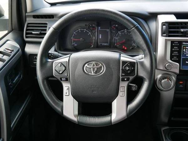 4WD. CARFAX One-Owner. 2024 Toyota 4Runner SR5 Premium 4WD 5-Speed with ECT 4.0L V6 DOHC 24V4WD, 17" 6-Spoke Alloy Wheels, 3.727 Axle Ratio, 4-Wheel Disc Brakes, 8 Speakers, ABS brakes, Air Conditioning, Alloy wheels, AM/FM radio: SiriusXM, Anti-whiplash front head restraints, Apple CarPlay/Android Auto, Auto High-beam Headlights, Auto-dimming Rear-View mirror, Brake assist, Bumpers: body-color, Compass, Driver door bin, Driver vanity mirror, Dual front impact airbags, Dual front side impact airbags, Electronic Stability Control, Emergency communication system: Safety Connect (1-year trial), Exterior Parking Camera Rear, Front anti-roll bar, Front Bucket Seats, Front Center Armrest, Front fog lights, Front reading lights, Front wheel independent suspension, Garage Door Opener, Garage door transmitter: HomeLink, Heated door mirrors, Heated Front Bucket Seats, Heated front seats, Heated Outside Rear-View Mirrors, Heated steering wheel, Illuminated entry, Knee airbag, Leather Shift Knob, Leather steering wheel, Low tire pressure warning, Navigation System, Occupant sensing airbag, Outside temperature display, Overhead airbag, Overhead console, Panic alarm, Passenger door bin, Passenger vanity mirror, Power door mirrors, Power driver seat, Power passenger seat, Power steering, Power windows, Radio: Premium Audio, Rear anti-roll bar, Rear seat center armrest, Rear window defroster, Rear window wiper, Remote keyless entry, Security system, SofTex Seat Trim, Speed control, Speed-sensing steering, Split folding rear seat, Spoiler, Steering wheel mounted audio controls, Tachometer, Telescoping steering wheel, Tilt steering wheel