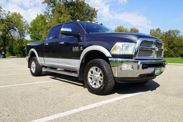 THIS 2014 RAM 3500 LARAMIE CREW CAB 4X4 RUN'S AND DRIVES LIKE NEW! 6.7 LITER I6-CUMMINS DIESEL, ICE COLD A/C, BACK-UP-CAMERA, HEATED AND COOLED LEATHER SEATS, HEATED REAR SEATS, HEATED STEERING WHEEL, TOP OF THE LINE PREMIUM SOUND SYSTEM, REMOTE START, KEYLESS ENTRY, ONE TOUCH WINDOWS, STEERING WHEEL CONTROLS, 4-WHEEL ABS BRAKES, LIMITED SLIP REAR DIFF, TOW PACKAGE, STABILITY CONTROL, TRACTION CONTROL, TOW HOOKS, FACTORY ANTI-THEFT SYSTEM, PARKING SENSORS, HEATED AND POWER SIDE MIRRORS, AND MUCH MORE! EXCELLENT SERVICE HISTORY, CLEAN CAR FAX-CLEAN TITLE, WE JUST HAD THE TURBO COMPLETELY REBUILT, THIS TRUCK IS IN EXCELLENT CONDITION INSIDE AND OUT! CALL US TODAY AT ** 651-645-9232 ** VISIT US AT 1523 COMO AVE SAINT PAUL, MN 55108* SAME LOCATION FOR OVER 30 YEARS * WWW.KANDLAUTOS.COM * AFTER HOUR YOU CAN CALL OR TEXT JOHN AT 651-634-9232