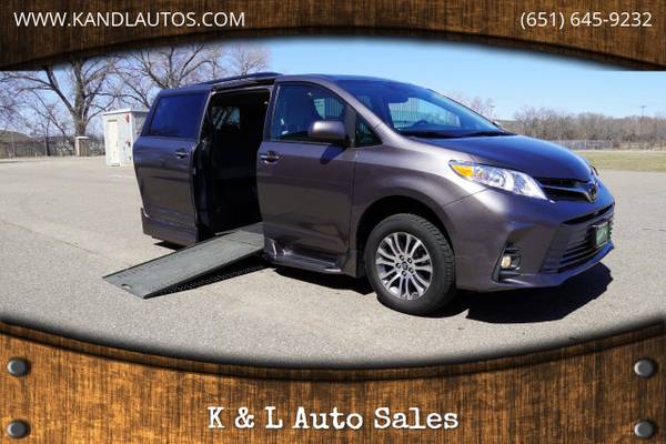 ** 2020 TOYOTA SIENNA XLE HANDICAP WHEELCHAIR VAN ** 26K ACTUAL MILES * COMES WITH AN ANDERSON POWER WHEELCHAIR, NAVIGATION, POWER HEATED LEATHER SEATS, BACK UP CAMERA, BLUETOOTH, SUNROOF, POWER REAR LIFT GATE, POWER SLIDING DOORS, CLIMATE CONTROL, ONE TOUCH WINDOWS, PUSH BUTTON START, STEERING WHEEL CONTROLS, 4-WHEEL ABS BRAKES, PRE- COLLISION WARNING SYSTEM, HEATED MIRRORS, STABILITY AND TRACTION CONTROL, WI-FI HOT SPOT, FACTORY ANT-THEFT SYSTEM, AND MUCH MORE!, CLEAN CAR FAX, CLEAN TITLE, FINANCING AVAILABLE, CALL US AT *651-645-9232* VISIT US AT 1523 COMO AVE SAINT PAUL, MN 55108 * SAME LOCATION FOR OVER 30 YEARS * WWW.KANDKAUTOS.COM * AFTER HOURS YOU CAN TEXT JOHN AT 651-322-0883