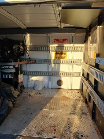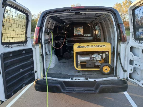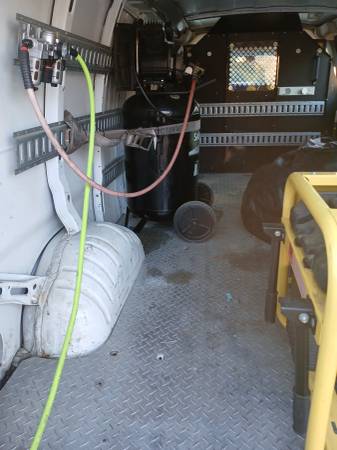 I have for sale a 2009 Chevy Express Cargo Van, very solid vehicle with good tires, solid mechanicals, it is in great condition for a work van. The transmission was replaced 5ish years ago so it has a lot more life for the mileage. Current odometer reads 248,073, it has a diamond steel floor and in great shape in the interior cabin. The rear door was replaced and that is why it is whit e and not the same color as the rest of the vehicle. There are two items mounted in the van that will be included with the sale of this vehicle, that being a compressor and gas generator. They both are in great working order. Everything goes together with this sale and everything will be sold in as is condition. I will only accept a cash, or a cashiers check transaction for this sale. The title is free and clear of any liens against. I am pretty firm on the price, so please only serious inquiries only.