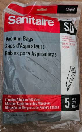 Selling a sealed 5-pack of Sanitaire 63262B disposable vacuum bags. Compatible with select Sanitaire upright models. Great for keeping your vacuum running efficiently.