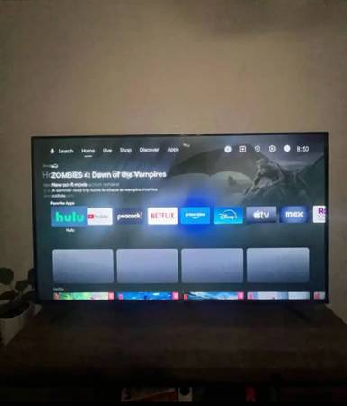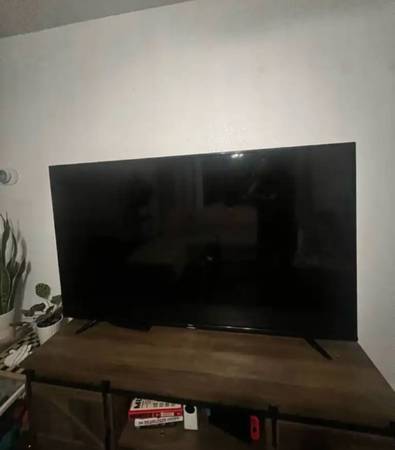 Large flat screen TV in good condition. Smart tv, no remote, uses this remote: https://www.amazon.com/Control-Replacement-Android-Without-Command/dp/B09WJH71YM?pd_rd_w=wqzoU&content-id=amzn1.sym.a597c214-69ac-43fa-b761-901474b79f00&pf_rd_p=a597c214-69ac-43fa-b761-901474b79f00&pf_rd_r=G25KE6M2VCGQ0B2JRCZM&pd_rd_wg=M4UAO&pd_rd_r=534d55dc-d1e8-4d77-8fbb-1b9644a963f3&psc=1&ref_=pd_bap_m