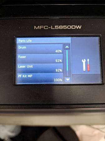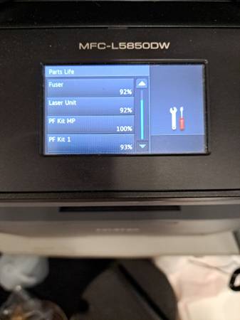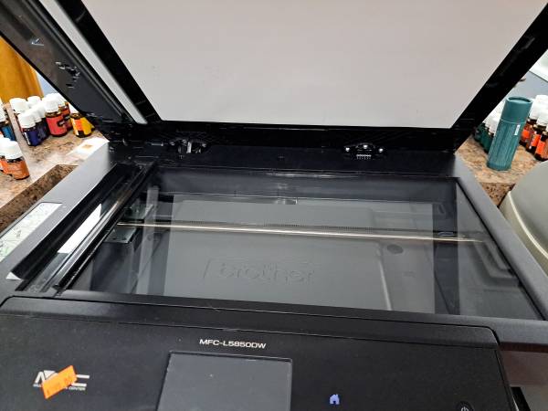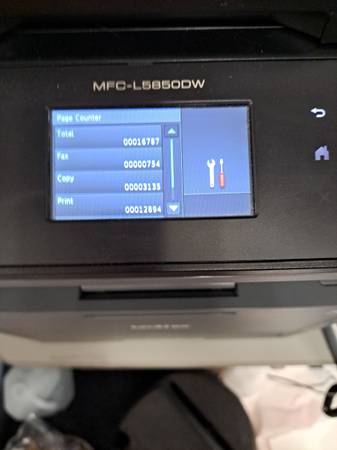 Working brother printer fax scanner.. MFC-L5850DW. Extra toner. See photos on usage many more years of life left. Closing business is the only. Reason; It's been reliable without problems.