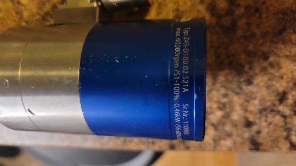 This is a Jaeger 60,000rpm spindle pulled from a 5 axis mill. It is in good shape but will need a bearing rebuild done before being used. Quite a bit cheaper than buying a new or rebuilt one. Comes...