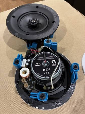 A pair of used Paradigm CI Home H55-R v2 In-ceiling speakers 3/4" PPA™ (Perforated Phase-Aligning) tweeter lens for smooth highs 5-1/2" mineral-filled polypropylene woofer frequency response:...
