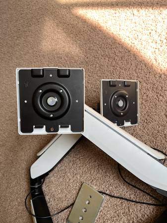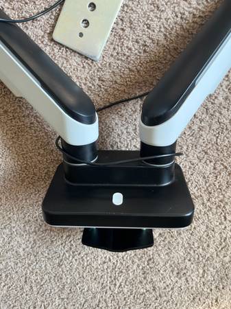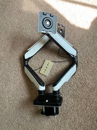 Dual monitor arms, heavy duty All hardware included USB male connector for lighting Minimal wear, excellent condition $100 OBO Thank you for looking