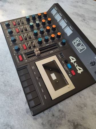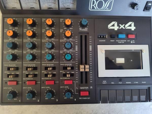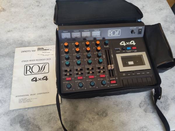 Cool old 4 track analog tape mixer. It powers up and will play a tape, I have not tested it for mixing but the condition is mint. Comes with original manual and carrying case.
