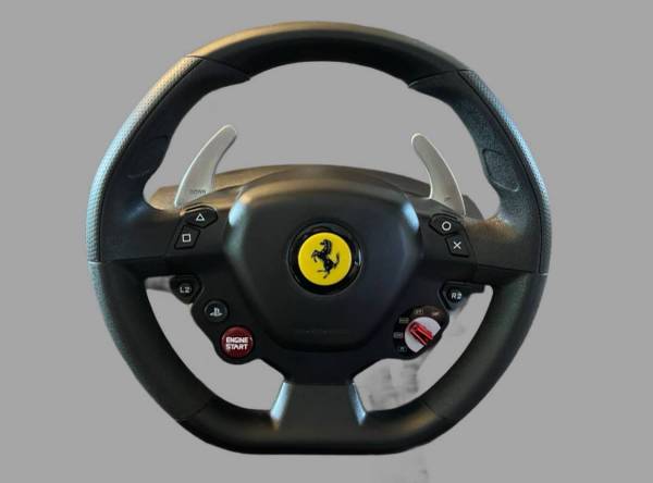 Thrustmaster 8:10 scale replica of Ferrari 488 GTB wheel, officially licensed by Ferrari and PlayStation 4, and designed to provide total realism in all PlayStation 4 racing games that support wheels. Also compatible with PC (Windows 7/8/10), this new Thrustmaster wheel includes a large 2-pedal pedal set. Works with PS5 games. (PS5 games compatibility has been tested and endorsed by Thrustmaster. At stage of publication, PS5 compatibility of the full range have not been yet tested nor endorsed by Sony Interactive Entertainment).