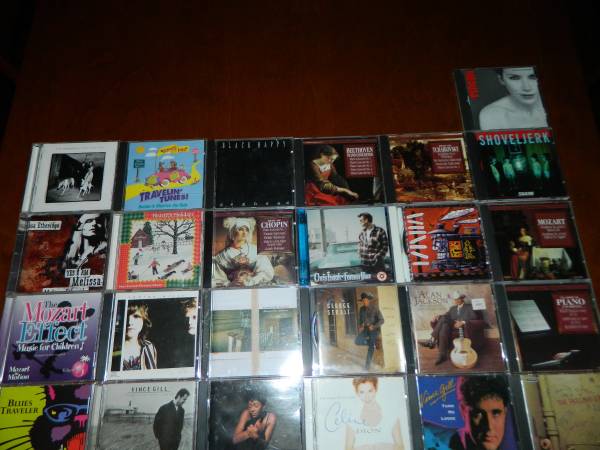 25 Music CDs for $3 each. If interested, text or email. Includes: Vince Gill high lonesome sound, Van Morrison Days Like This, Melissa Etheridge Yes I Am, The Mozart Effect Music for Children Volume 3 - Mozart in Motion, Blues Traveler four, Hootie and the Blowfish Fairweather Johnson, Anita Baker Rapture, Dana's Best Travelin' Tunes Songs to Shorten the Ride, Heartfelt Holidays More American Christmas Classics, indigo girls, Chris isaak Forever Blue, George Strait Carrying Your Love With Me, Celine Dion Falling into You, Black Happy peghead, Best of Chopin Classical Treasures, Best of Tchaikovsky Classical Treasures, Hot Country for the 90's Rebound Records, Alan Jackson The Greatest Hits Collection, Vince Gill Turn Me Loose, Beethoven Piano Concertos Classical Treasures, Annie Lennox Medusa, Shoveljerk Swarm, Mozart Classical Treasures, Classical Piano Favorites Classical Treasures and The Rolling Stones Beggars Banquet.