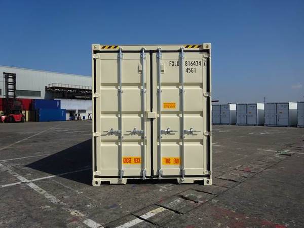 40 ft HC With DOORS in BOTH ENDS...one trip / new shipping container Light Tan / Ivory color 40' L 9'6" H (high cube) 8' W you can pick up or we can arrange delivery. If we deliver...driver picks up...