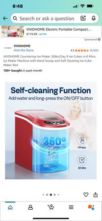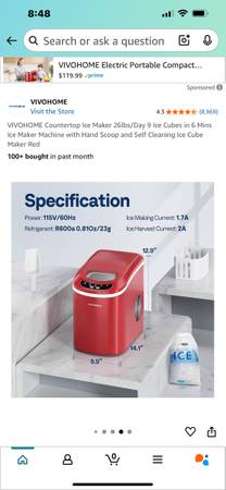 Like new condition portable ice cube maker. As you can see and read in the pictures, it is great and very convenient. I paid over $100, so $50 is a great deal.