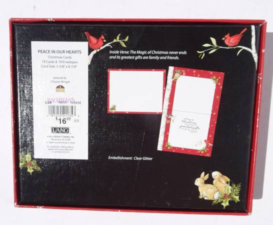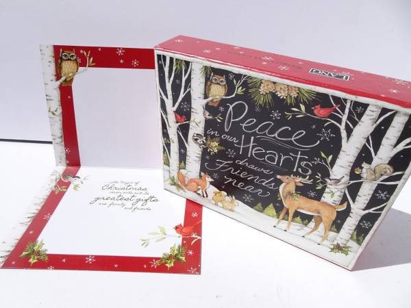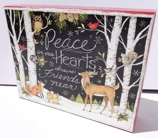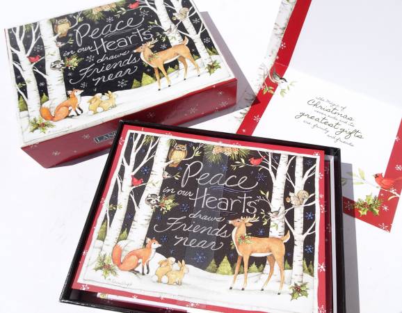 Christmas Holiday cards "Peace in our heart" with animals LANG 1004777 "Peace in Our Hearts" Boxed Christmas Cards by Susan Wignet 2016 Size of Box: 7 1/4 x 6 x 1 5/8 in Deer, Fox, Rabbits,...