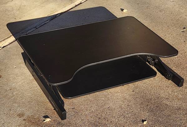 In lowered position 24" x 32" wide. Raises from 6.5" tall to 16" tall. Great condition.