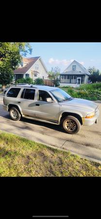 Im selling my 2002 dodge Durango. It’s all wheel drive. It runs and drives good the engine and transmission run really smooth. It has 260,000 miles. There’s no dash lights on at all. Two known issues are the driver side window doesn’t roll down and it shakes a little bit while driving. I think It just needs an alignment and a tire rotation to fix the little shaking. I have a clean title in hand and the tabs are up to date. We will have to go to the dmv to transfer the title if you want to buy it no exceptions. Again It is completely fine to drive as is. Text me if you're interested 651-377-963Three.