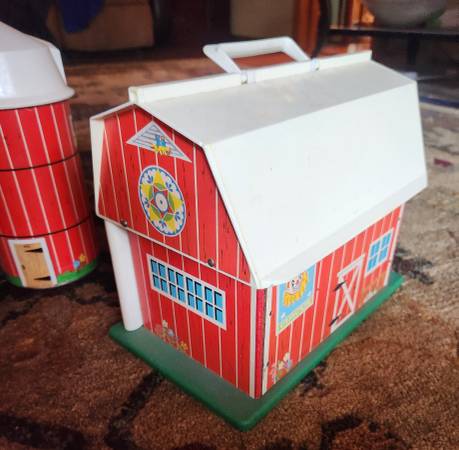 Fisher Price School, Farmhouse with fencing and animals. The barn door makes a little bit of the moo sound when you open and close the door, but not the whole moo.